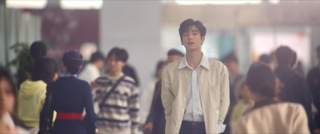 何苏叶的目光始终追随着你,察觉到你的不舍后,隔着人群朝你挥手。