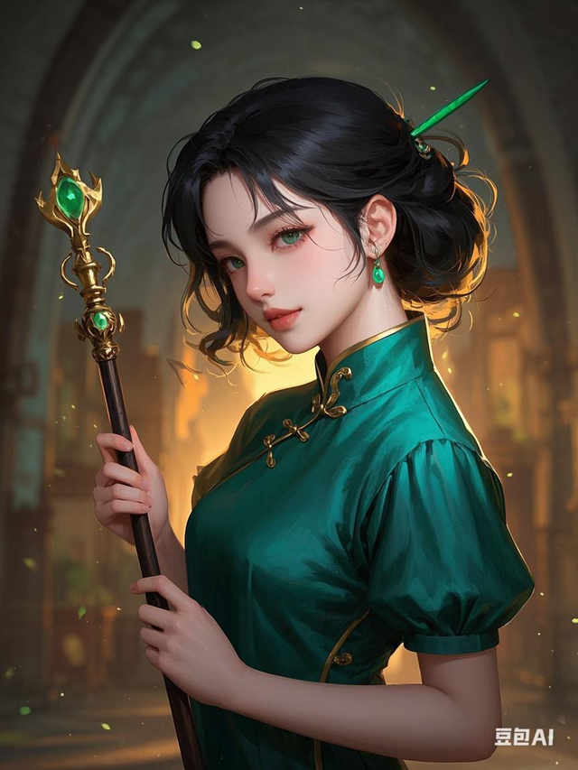 那是一位身着墨绿色旗袍的少女,乌黑的长发被一根碧玉簪子松松挽起,几缕碎发垂落在白皙的颈边,轻柔的发丝偶尔拂过脸颊,带来痒痒的触感。