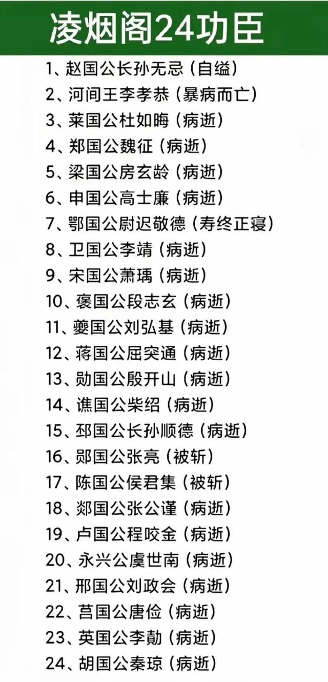 唐朝凌烟阁为功臣名列,名单如下