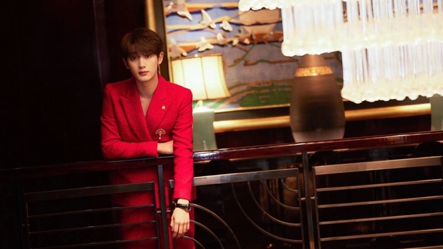 就在这时,一抹红色映入眼帘,她抬眼望去,只见一个身着酒红色西服的男士缓缓走来。