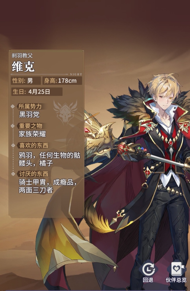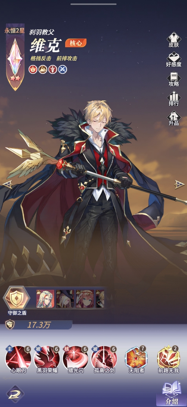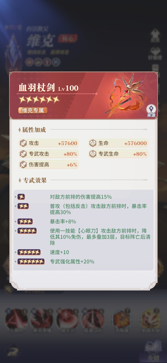 黑色鸦羽是维克誓死捍卫的荣耀,提高25%攻击和15%生命,普攻伤害系数提高60%,位于前排时格挡提高15%