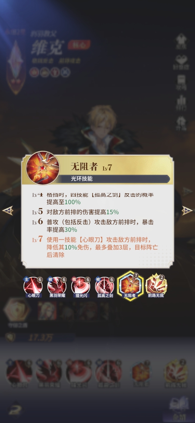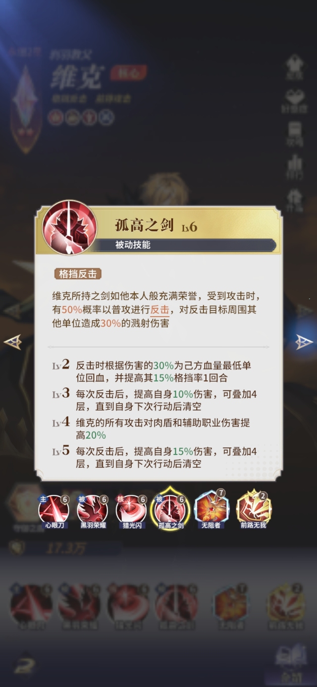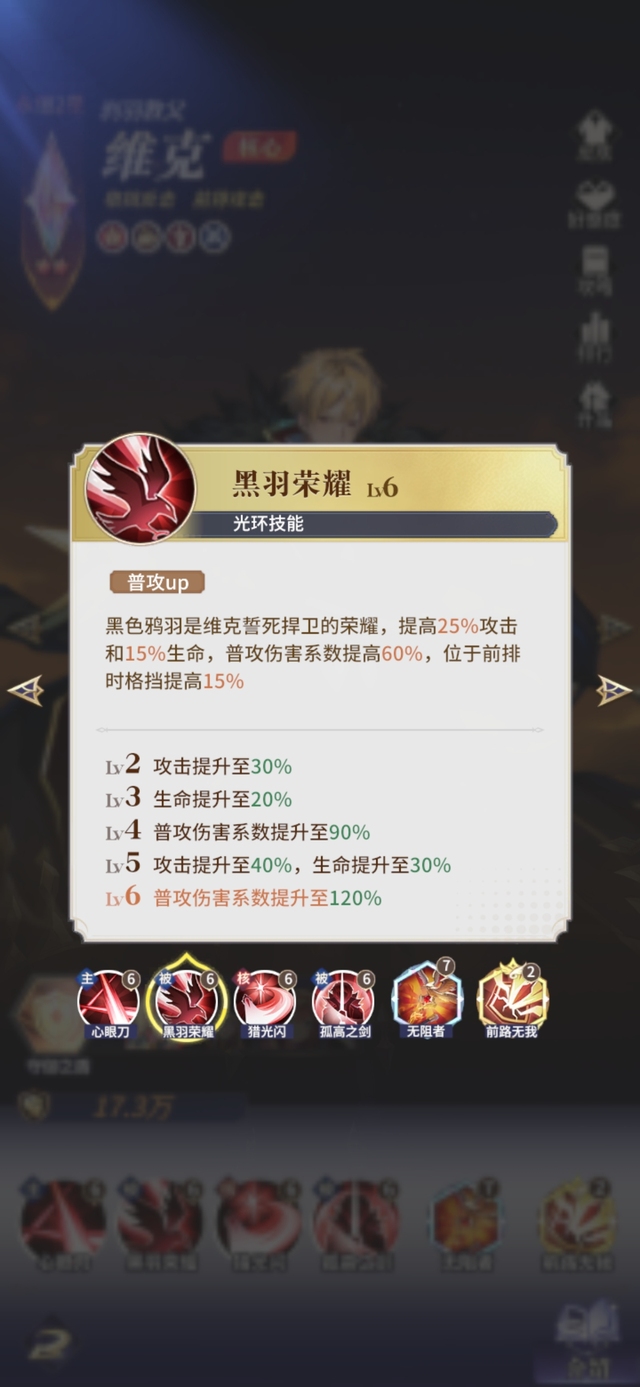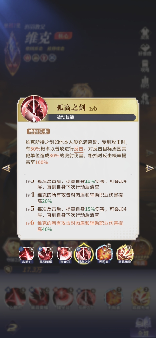 Lv6 普攻(包括反击)攻击敌方前排时,暴击率提高30%