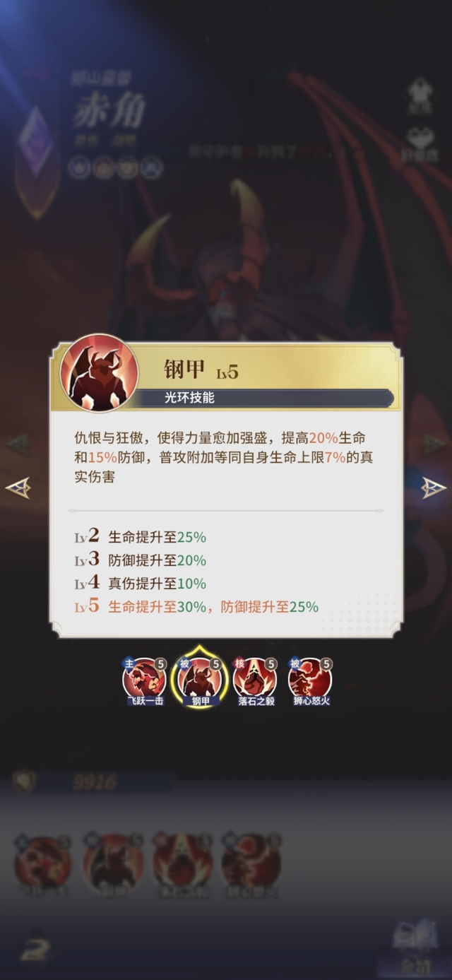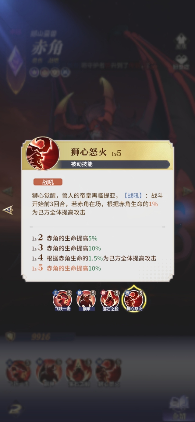 Lv4根据赤角生命的1.5%为己方全体提高攻击赤角的生命提高10%