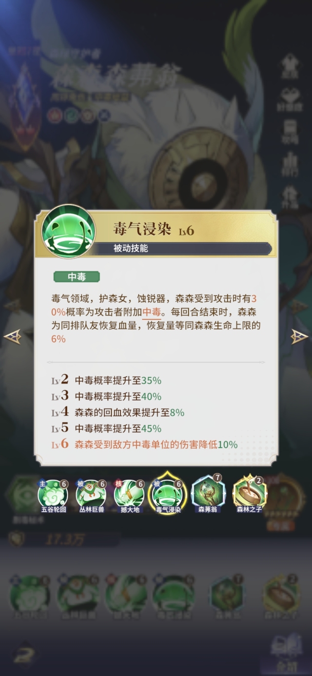 LV6 森森受到敌方中毒单位的伤害降低10%