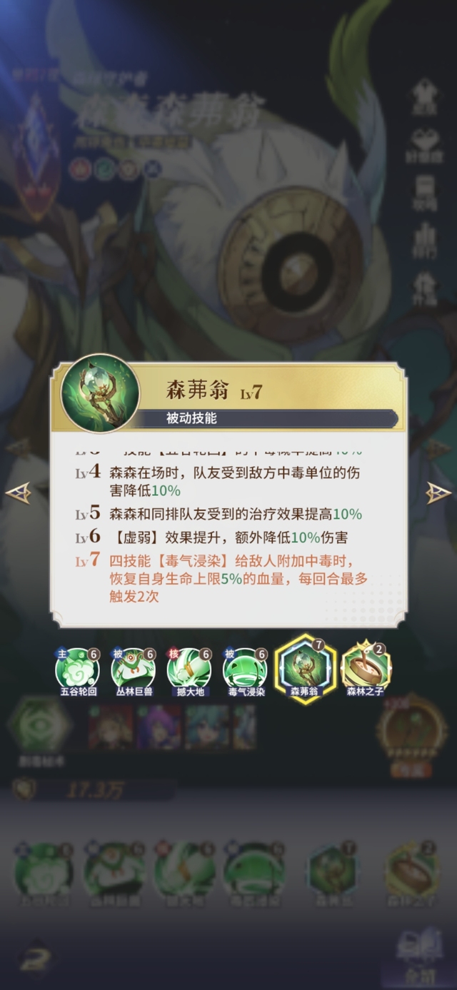 LV4森森在场时,队友受到敌方中毒单位的伤害降低10%
