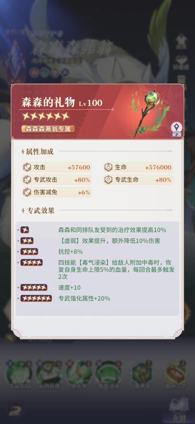 Lv5森森和同排队友受到的治疗效果提高10%