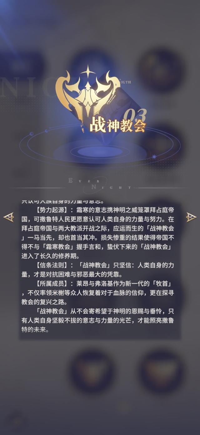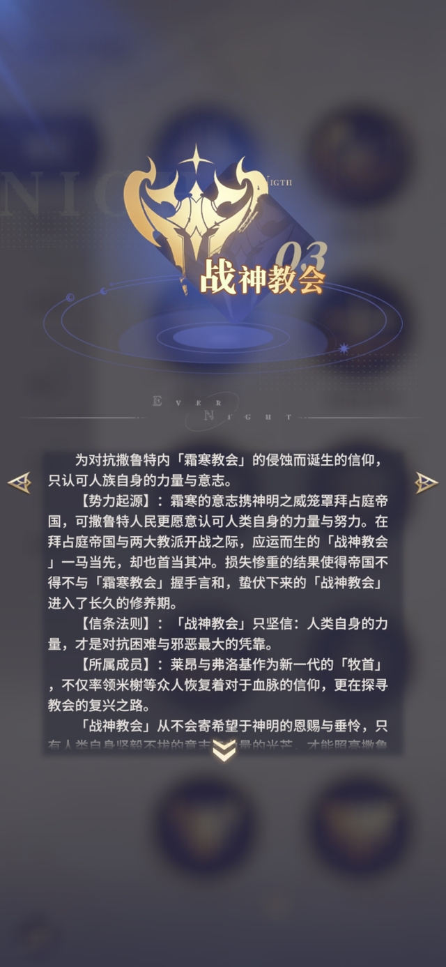 【信条法则】:「战神教会」只坚信:人类自身的力量,才是对抗困难与邪恶最大的凭靠。