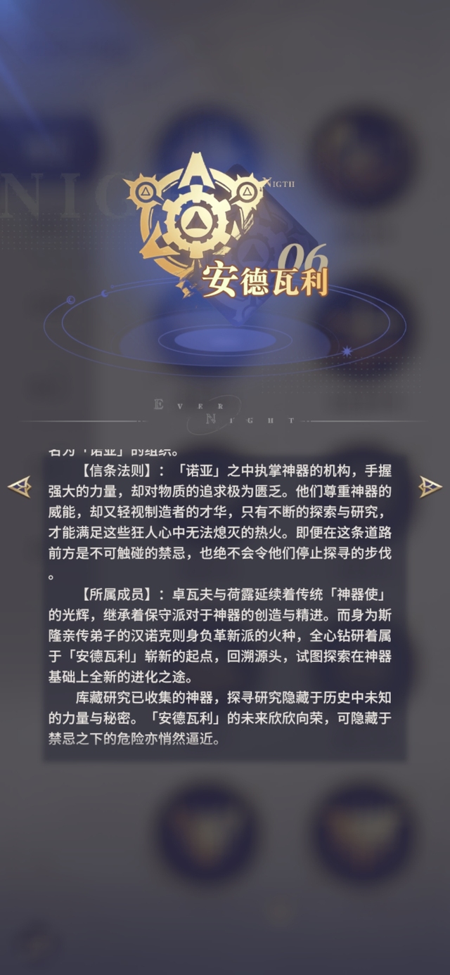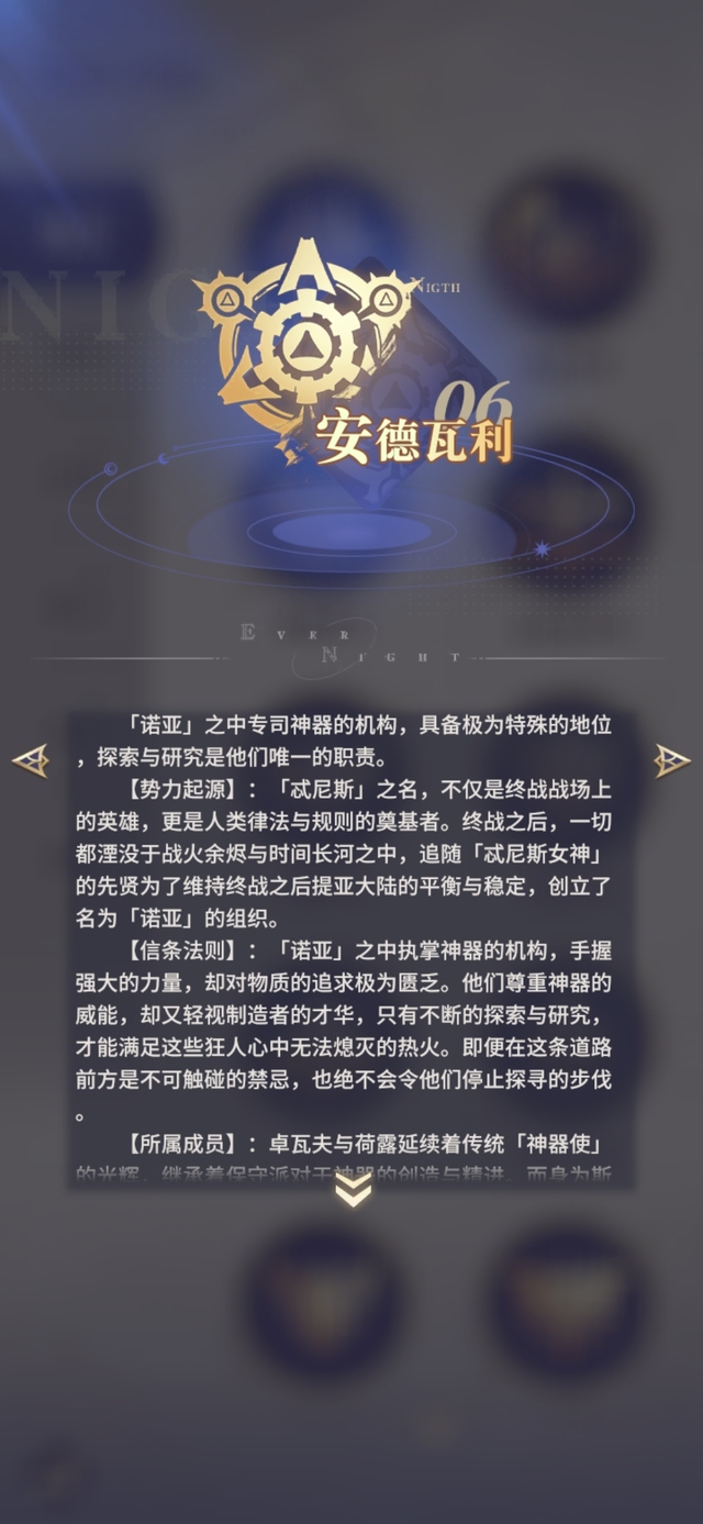 库藏研究已收集的神器,探寻研究隐藏于历史中未知的力量与秘密。「安德瓦利」的未来欣欣向荣,可隐藏于禁忌之下的危险亦悄然逼近。