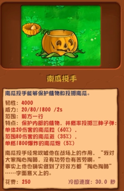 南瓜投手能够保护植物和投挪南瓜。