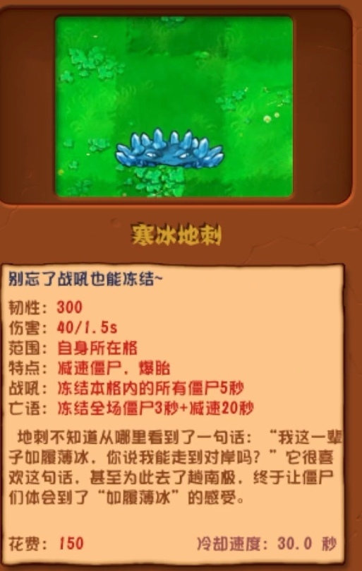 地刺不知道从哪里看到了一句话:"我这一辈子加履薄冰,你说我能走对岸吗?"它很喜欢这句话,甚至为此去了趟南极,终于让僵尸们体会到了"加履薄冰"的感受。