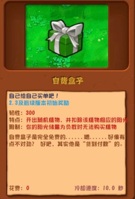 特点:开出随机植物,并扣除该植物相应的阳光