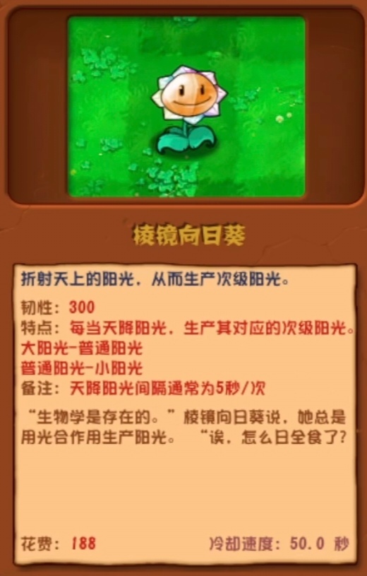 特点:每当天降阳光,生产其对应的次级阳光。