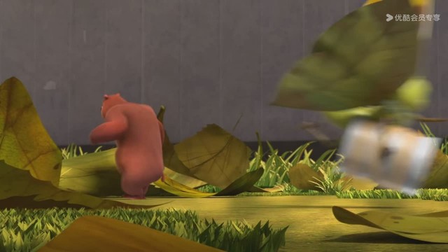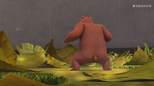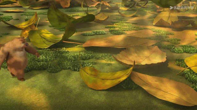 光头强她肯定是躲在落叶里面