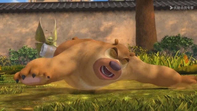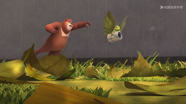 熊大来不及反应就被枯叶蝶打了