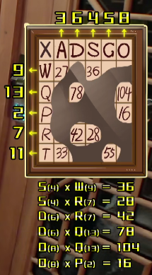 蒲熠星在两边逛了逛,发现这是一个正方形走廊,走廊的中间有一块不完整的板,疑似是密码题