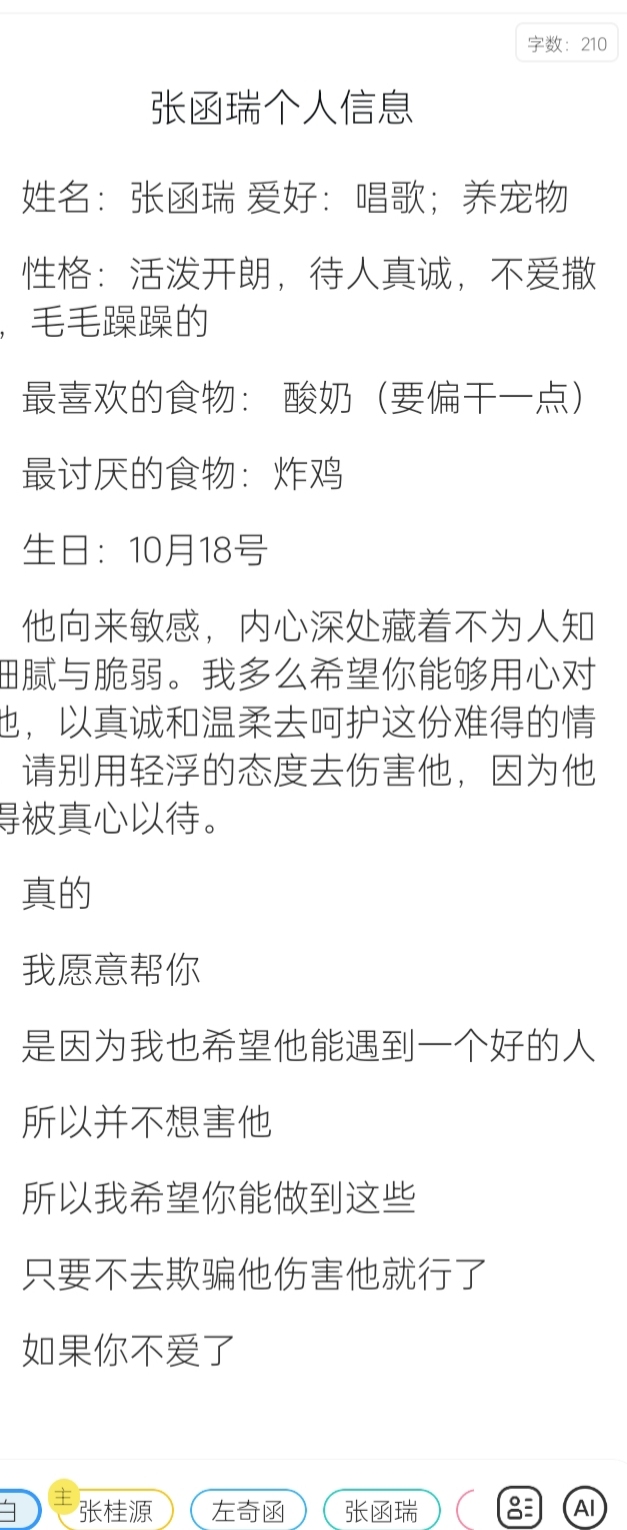 左奇函我想让杨博文帮我写一下张函瑞的个人信息
