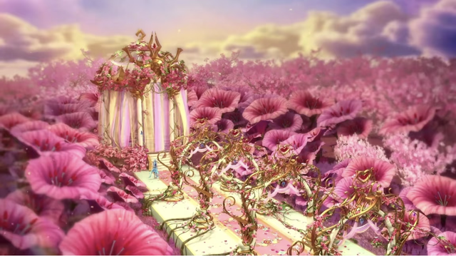 很快,她们来到了花海潮花圣殿。