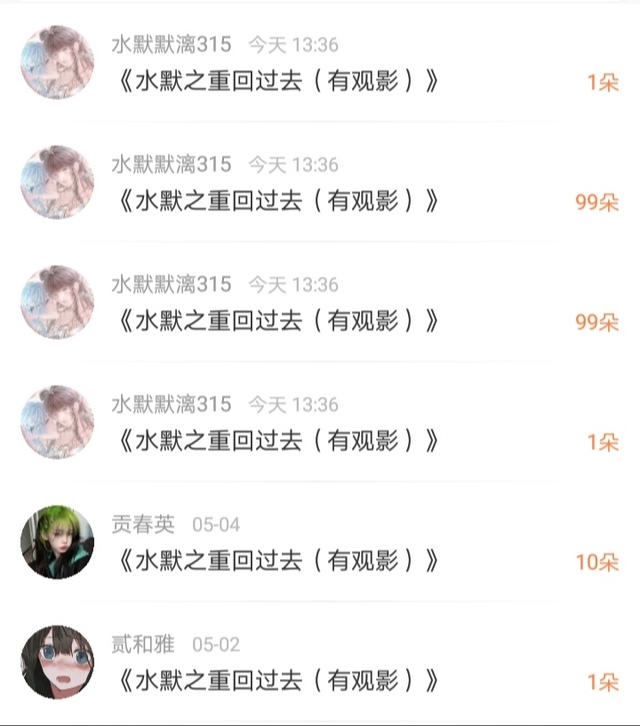 水默默漓(作者)感谢三位宝宝送的花花