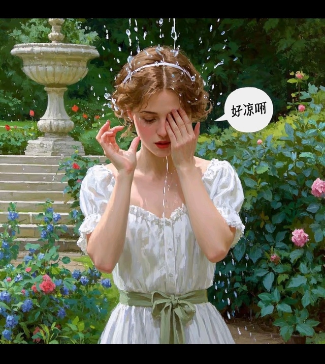 茶茶措不及防,被泼了一脸水,她忍不住缩了缩脖子:
