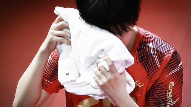 王楚钦将脸深深埋进毛巾里,汗水不断顺着脖颈滑落。他吸了吸鼻子,突然觉得眼睛有些酸涩,上下揉搓几下后沉沉叹了口气。