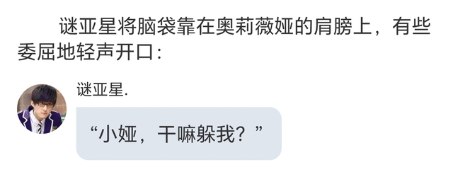 似乎是暧昧中透露着一丝丝奥莉薇娅的不耐烦,又或者是两情相悦中透露着一点点谜亚星的痴心妄想。