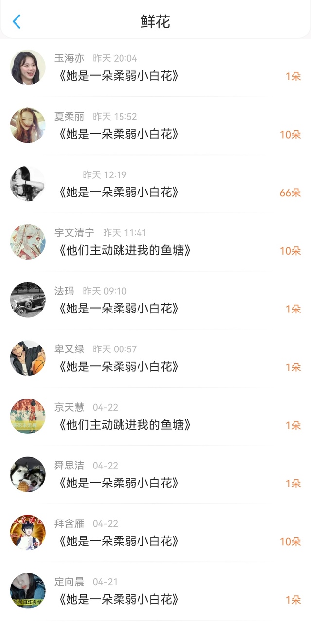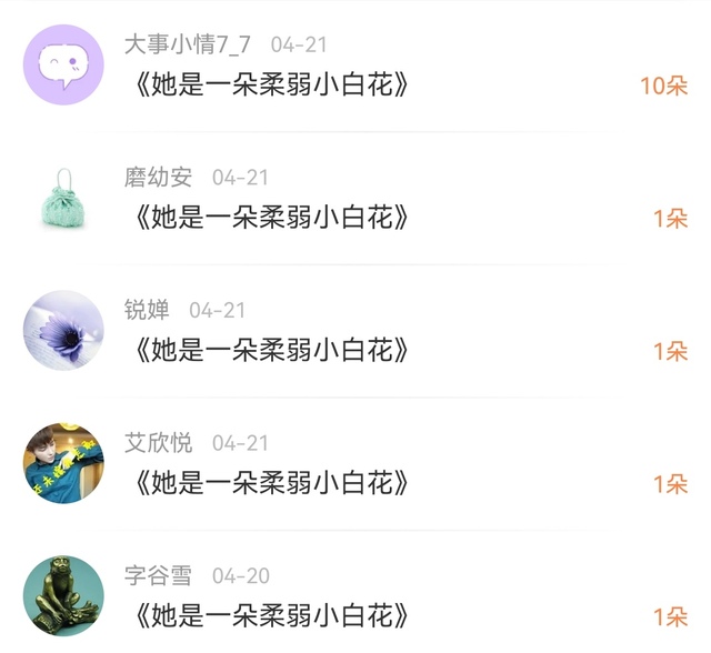 作者谢谢宝贝们送的花花,爱你们哟!🌷