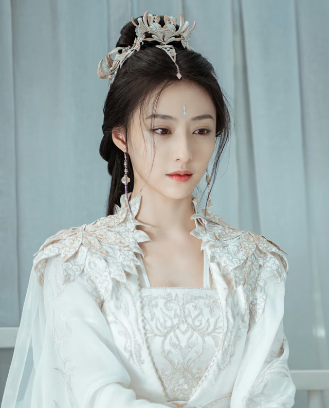 女子伫立在那里,宛如一朵在月光下独自绽放的白莲。一身素雅却精致的白色传统服饰勾勒出她的轮廓,然而,那张清秀的脸庞上却笼罩着一层淡淡的忧郁。她的眉间微蹙,眼神略显深邃,华丽的头饰和耳环为她增添了几分高贵气质,但这些耀眼的饰品却无法掩盖住她内心深处的惆怅