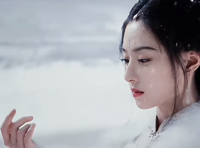 雪花轻轻落在她的指尖,她缓缓抬起手,凝视着那片脆弱的结晶。洁白的雪花在她掌心渐渐融化,化作一滴冰凉的水珠,而她的眼中却泛起了温热的泪光。身上的白色衣裙与周围飘舞的雪花融为一体,仿佛她也是这雪景的一部分。风轻轻拂过,带起几缕发丝,她的神情带着难以言喻的哀伤