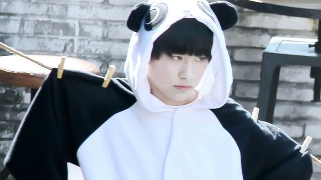 你第一次见易烊千玺时,这个像是俯瞰这个世界的神,高不可攀自带一股高冷的气质,可现在他似乎像被人拉下了凡间,穿着黑白相间的熊猫连体衣,整个人有种严肃的可爱。