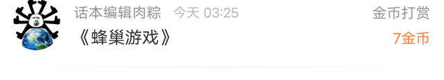 感谢话本编辑肉粽的7金币