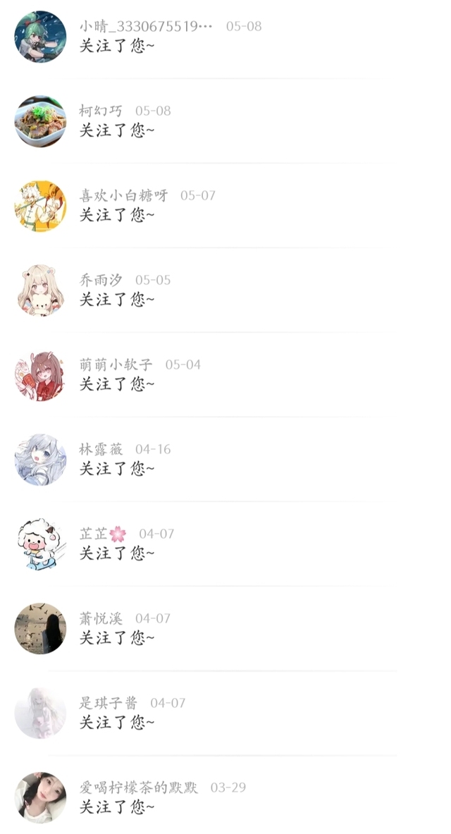 作者感谢这些温柔可爱善良大方的紫啧的关注