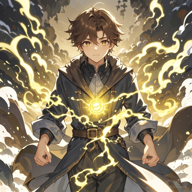 一个坐在椅子上的棕发少年,微微一笑,棕色的眼眸露出一种独特的温暖,整个人仿佛偏爱棕色一样,浑身都是棕色,浑身散发着光芒,仿佛一个太阳正在温暖着周边的人