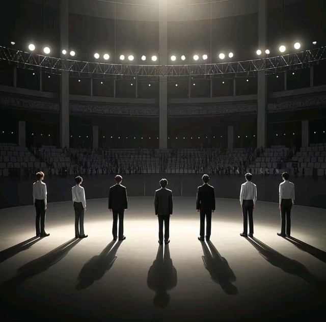 音乐从马嘉祺的平台开始——清唱《星火》的第一句,声音在空旷的场馆孤独回荡。接着是丁程鑫从相反方向接续,然后是严浩翔的rap独白...七个声音此起彼伏,明明唱着同一首歌,却像永远无法交汇的平行线。