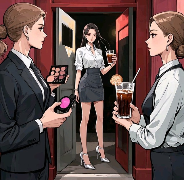 门突然被推开。周季笙踩着十厘米的细高跟走进来,身后跟着两个助理,一个端着冰美式,一个捧着粉饼盒随时待命。