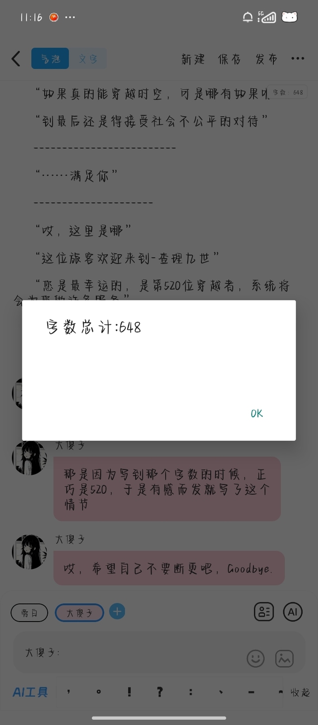 大傻子那是因为写到那个字数的时候,正巧是520,于是有感而发就写了这个情节
