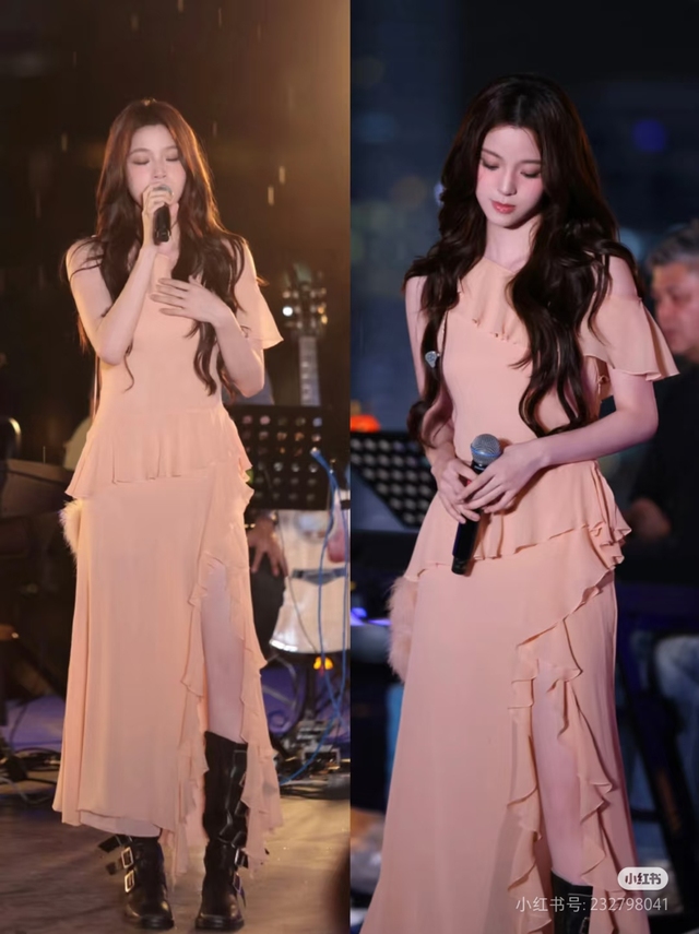 吴宣仪还没换衣服呢