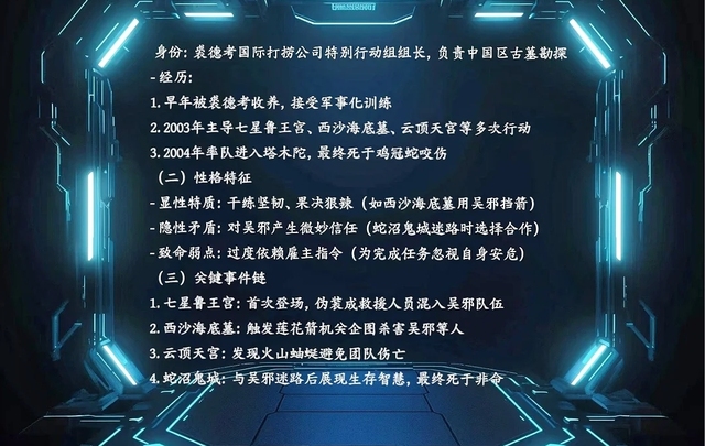 当系统传送来的档案浮现于眼前,她的视线却不由自主地定格在首页那张照片上。与方才所见的景象截然相反,照片中的阿宁身着探险服,明艳张扬,英姿飒爽,仿佛下一秒便会从画面中走出,带领队伍迈向未知的秘境。这是裘德考探险队的领队阿宁,一位以坚定步伐丈量过无数神秘之地的传奇女性。然而,如此辉煌的人生,却被无情地终止于“蛇沼鬼城”这四个冰冷的字词之间,恰似一把锋利的刀刃,深深镌刻在时光的长河之中,让人望之而心惊胆战。