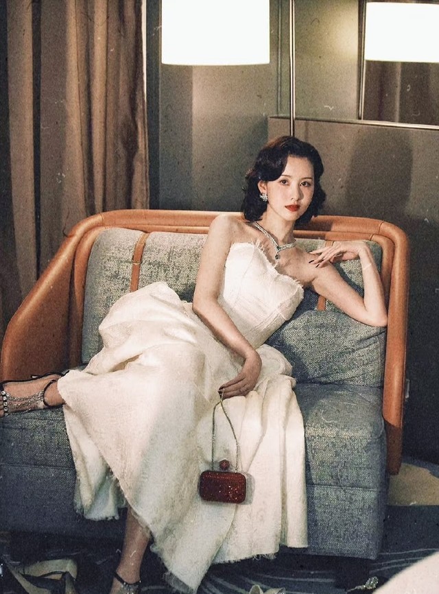 平板突然跳出推送:CELINE全球官网更新九宫格。最后一张是李以纯穿着白色缎面礼裙站在琉璃花窗前,裙摆铺展如凝固的牛奶,发间珍珠簪子坠着流苏,像民国大小姐偷穿了现代高定。
