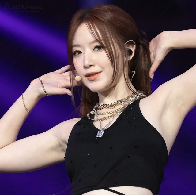 然后就是艾糖稃她扎着双马尾看起来可爱实则带点霸气,她穿的是一件黑色的抹胸十分的迷人,跟往常的可爱现象现成了对比