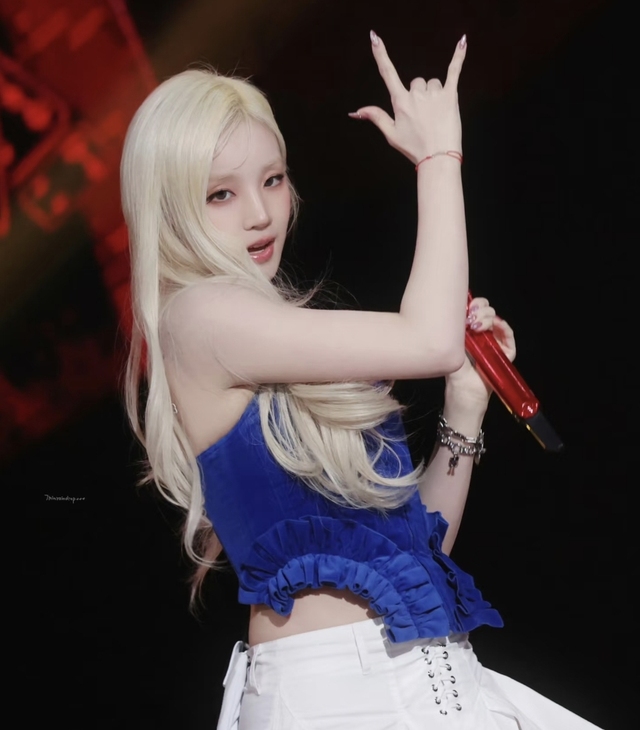 接着走上来的是温诗沅她穿着蓝色抹胸上衣下身是一件白色的短裙,一头黄色的长发看起来比平时的霸气了很多