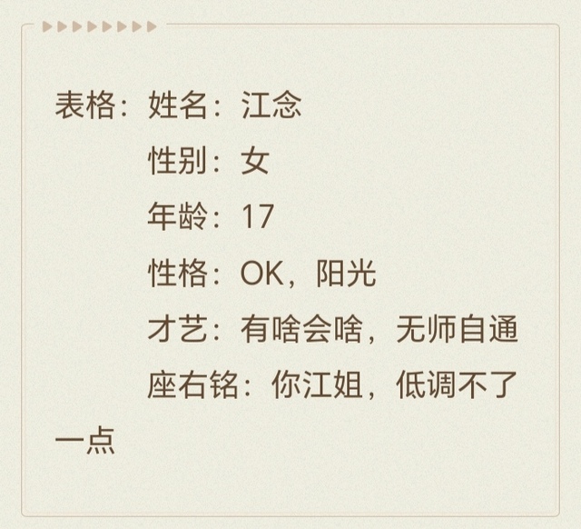 江念大家好!我是江念以后和你们相处希望能愉快