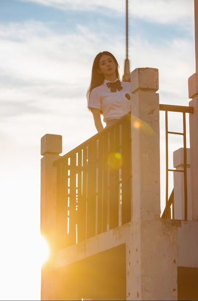 天台的视野极好,可以俯瞰整个校园和远处的城市轮廓。夕阳西下,天空被染成金红色,云朵像被点燃了一般绚烂。