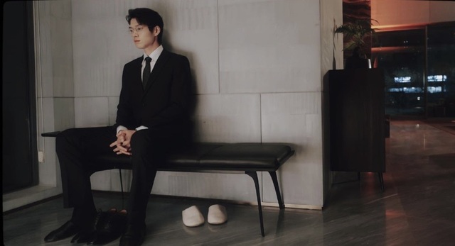 走出来时,你看见了孟宴臣坐在长椅上看着你。
