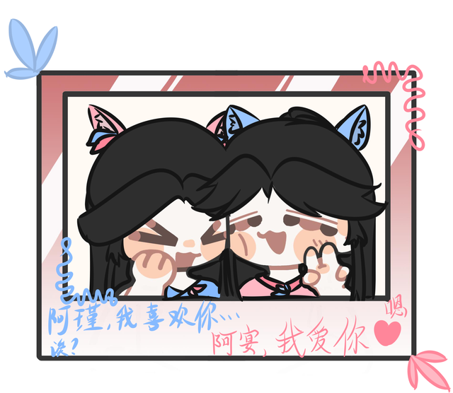 经过一番不懈的努力之下,两个人画的q版小人已经有些人样了。
