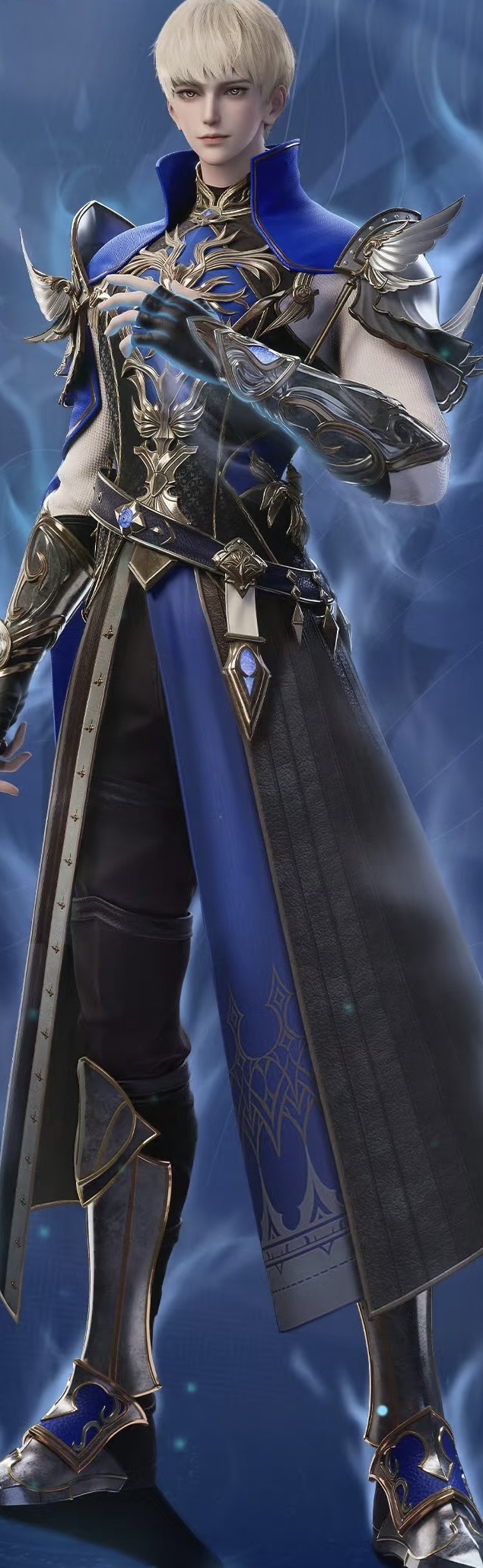 突然出现的金色光点围绕着杨文昭形成丝绸般的光圈,在一片朦胧中蓝黑色的轻甲就这么出现在杨文昭身上。