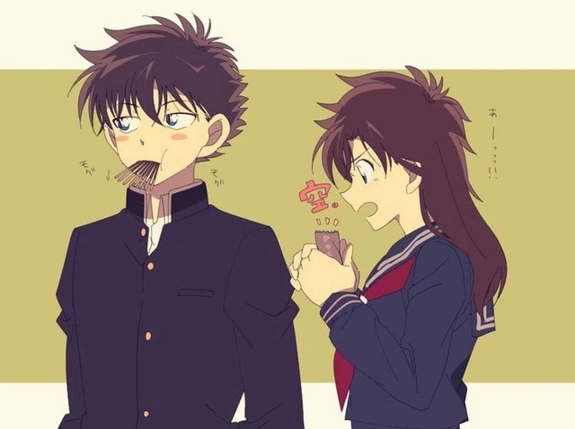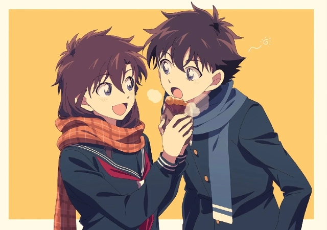 青子递过巧克力,掰了一半给快斗