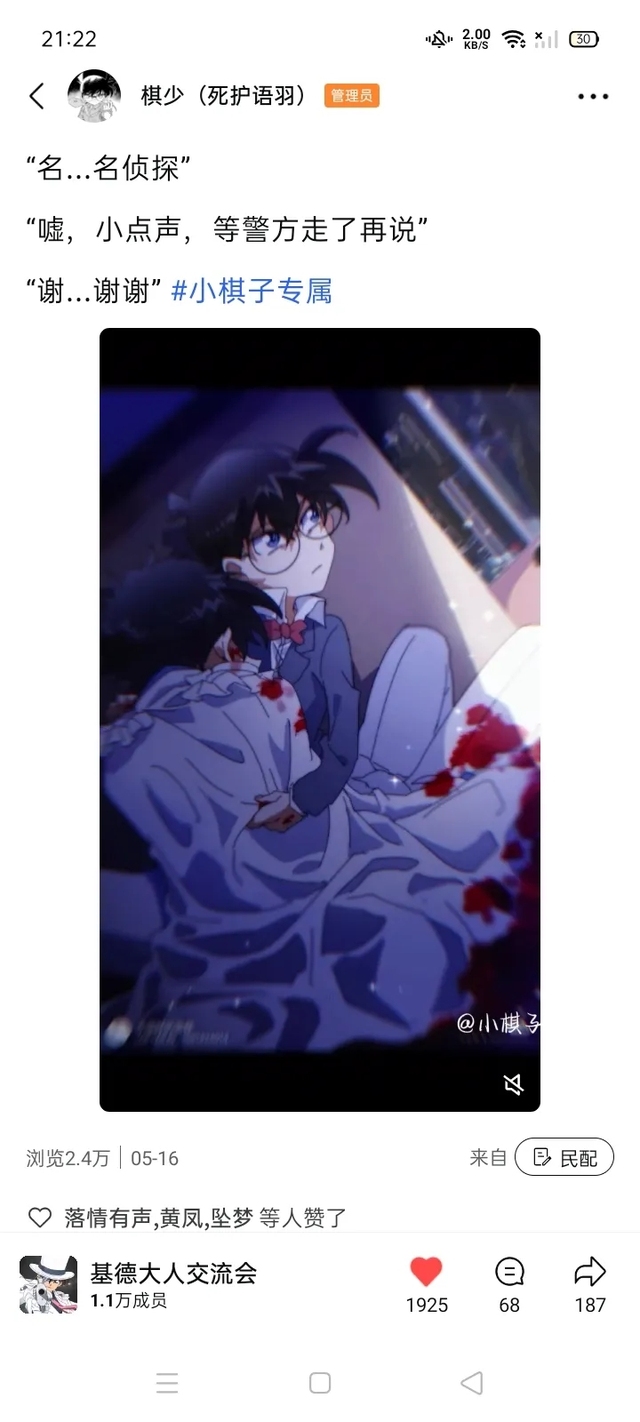 冬月晴空(作者)这张图看起来有点虐心呢,๐·°(৹˃̵﹏˂̵৹)°·๐。应该是出自《名侦探柯南:绀青之拳》吧?