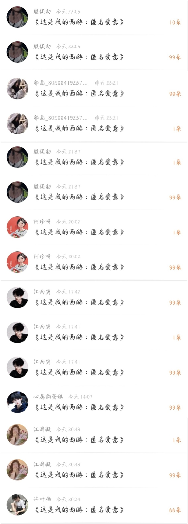 谢谢宝宝们的鲜花