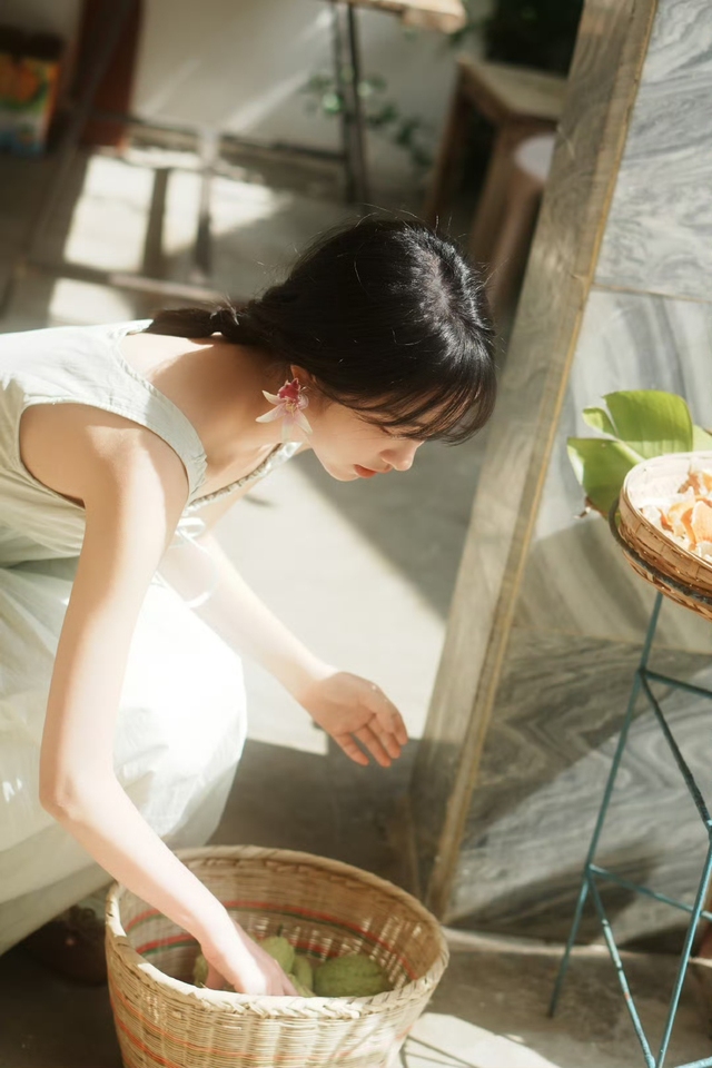 蒸腾的水汽里,她褪去了女王的华贵披风,浅粉襦裙随着动作轻轻摇晃,发间只别着一支桃木簪子,倒真像个未经世事的邻家姑娘。