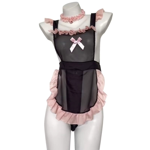 盒子里静静躺着一件粉色花边的男仆围裙,轻薄的布料几乎透明,系带设计让穿上它的人几乎一览无余。